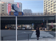 2.出口をでてすぐ左手にある信号を渡り、左に曲がります。