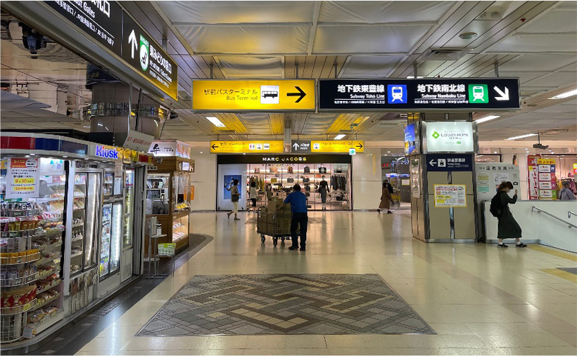 3.右斜め前の方へ進むと「エスタ」に着くので中に入り、地下鉄東豊線の標識に従って進みます。