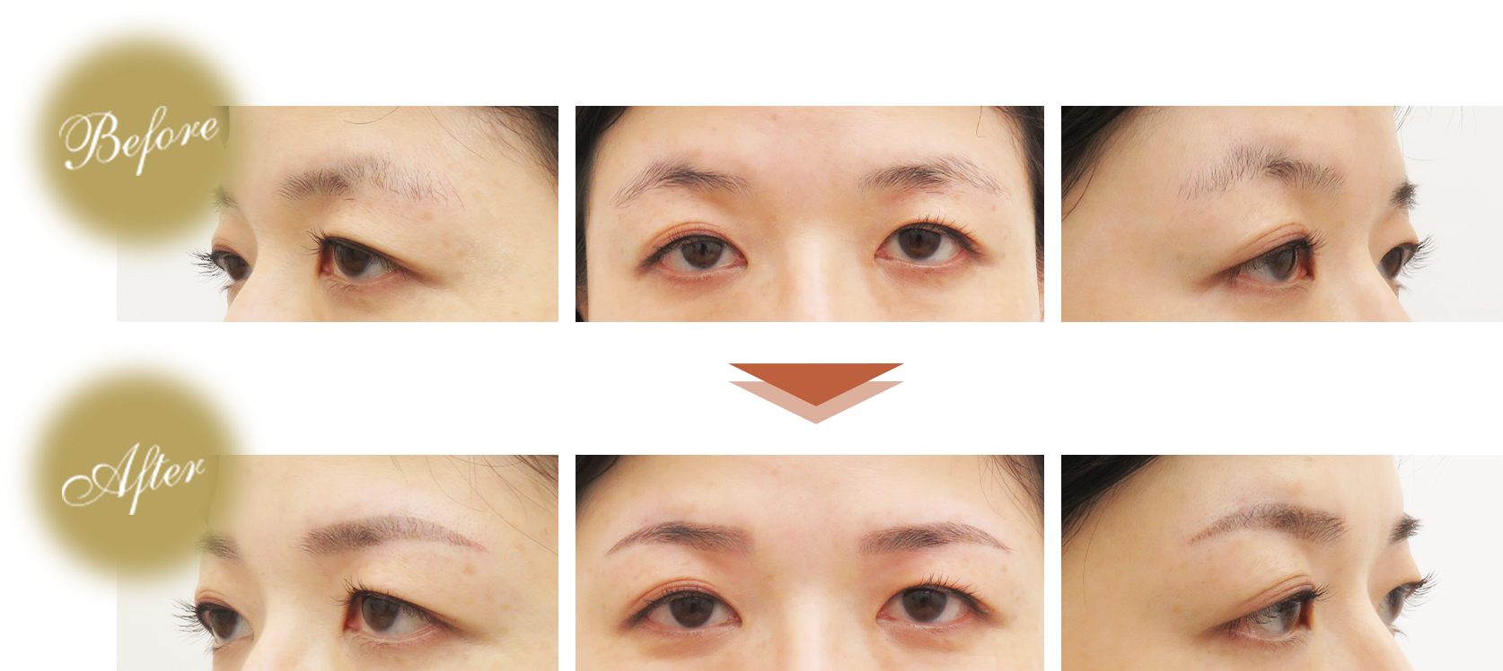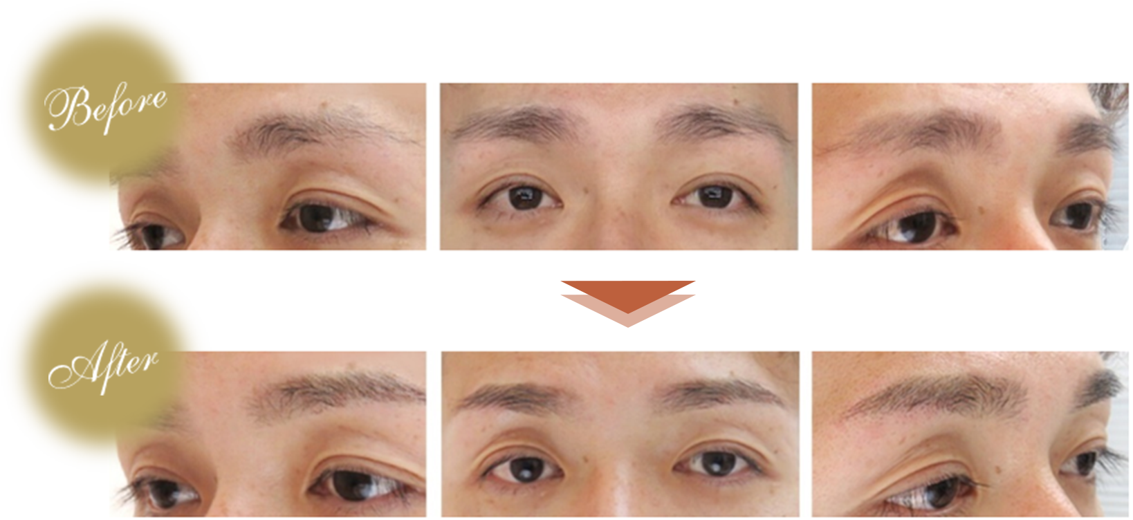 眉頭から眉尻まで、ふんわりとグラデーションをつけながら仕上げるアートメイクです。パウダー眉・3Dグラデーション・マイクロピグメンテーションとも呼ばれています。昔の塗りつぶしたような眉毛アートメイクではなく、素顔でも濃すぎずに自然と馴染む仕上がりです。
