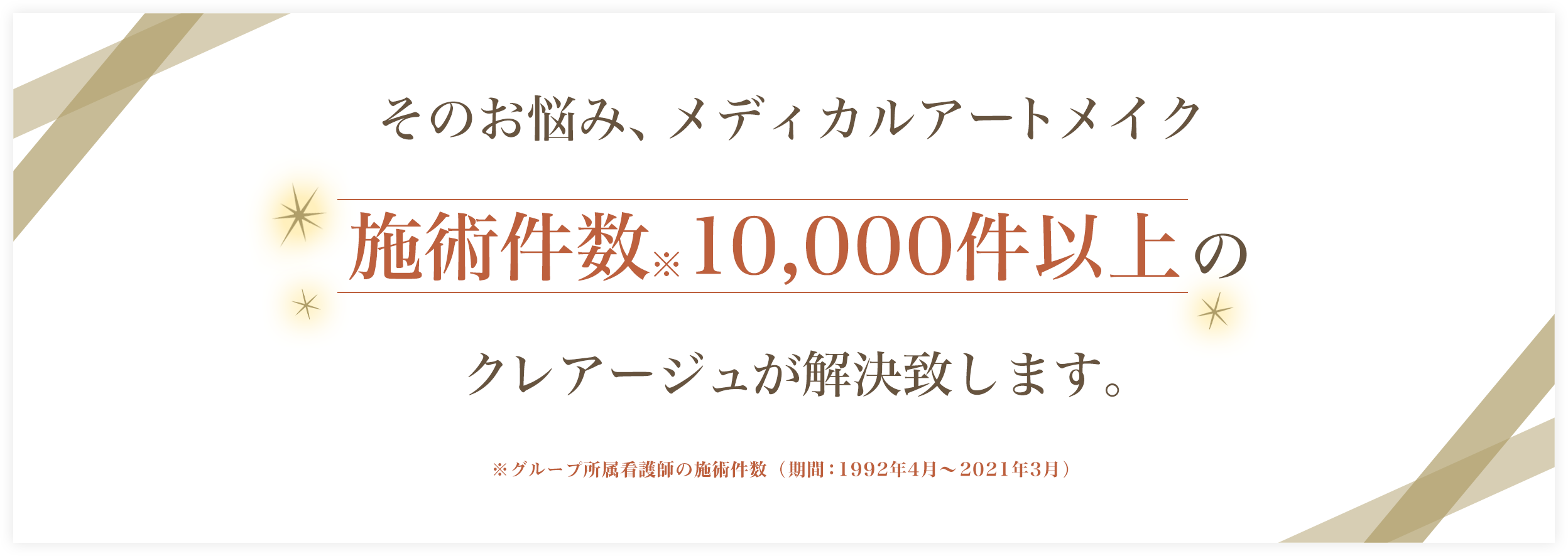 そのお悩み、メディカルアートメイク施術件数10,000件以上のクレアージュが解決いたします。