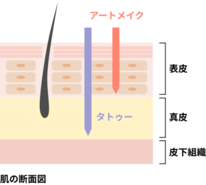 眉毛アートメイクを入れようか迷っている方は、アートメイクとタトゥー・刺青(入れ墨)の違いが気になっているのではないでしょうか。実は、アートメイクとタトゥー・刺青(入れ墨)は、色素を入れる深さが異なります。
