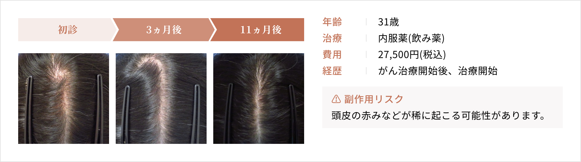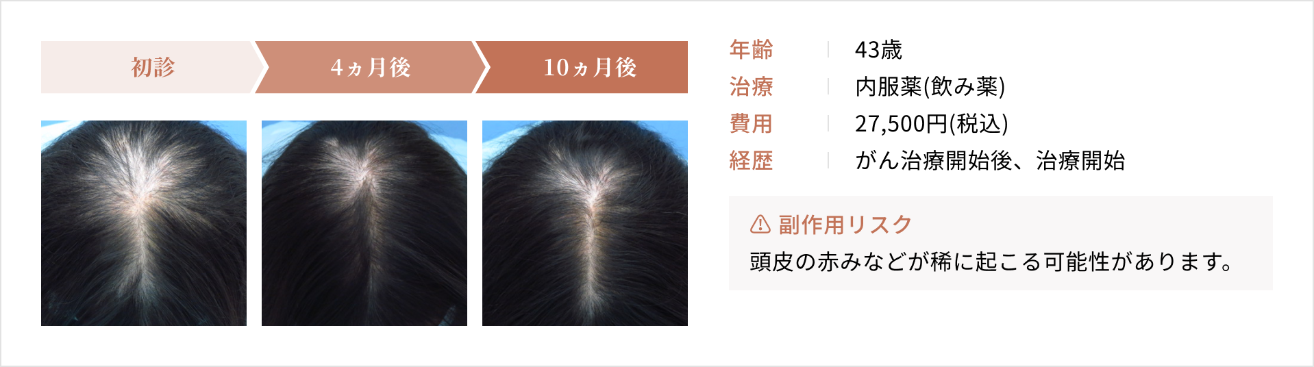 しかし、髪の太さや色、質が治療前と変わってしまうことも少なからずあり、中には回復が見られない方もいらっしゃいます。