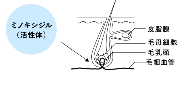 ミノキシジルには発毛作用がありますが、その最初のアクションとして細胞のイオンチャネル(ATP感受性K+ Channel)の開口があります。そのアクションが振動圧刺激によっても発生することが確認されました。つまり、非接触振動圧刺激はミノキシジルと同様の初期作用を有しており、発毛の可能性を示唆しています。