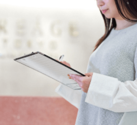 受付が終わったら、次は問診票の記入です。問診票では、過去の病歴やアレルギーの有無等の一般的な事柄と、髪についての質問にお答えいただきます。ご自分で分かる範囲で髪のことが気になりだした時期、育毛剤や治療薬の使用経験の有無等をチェックしていただきます。分からない点は受付スタッフがサポート致します。