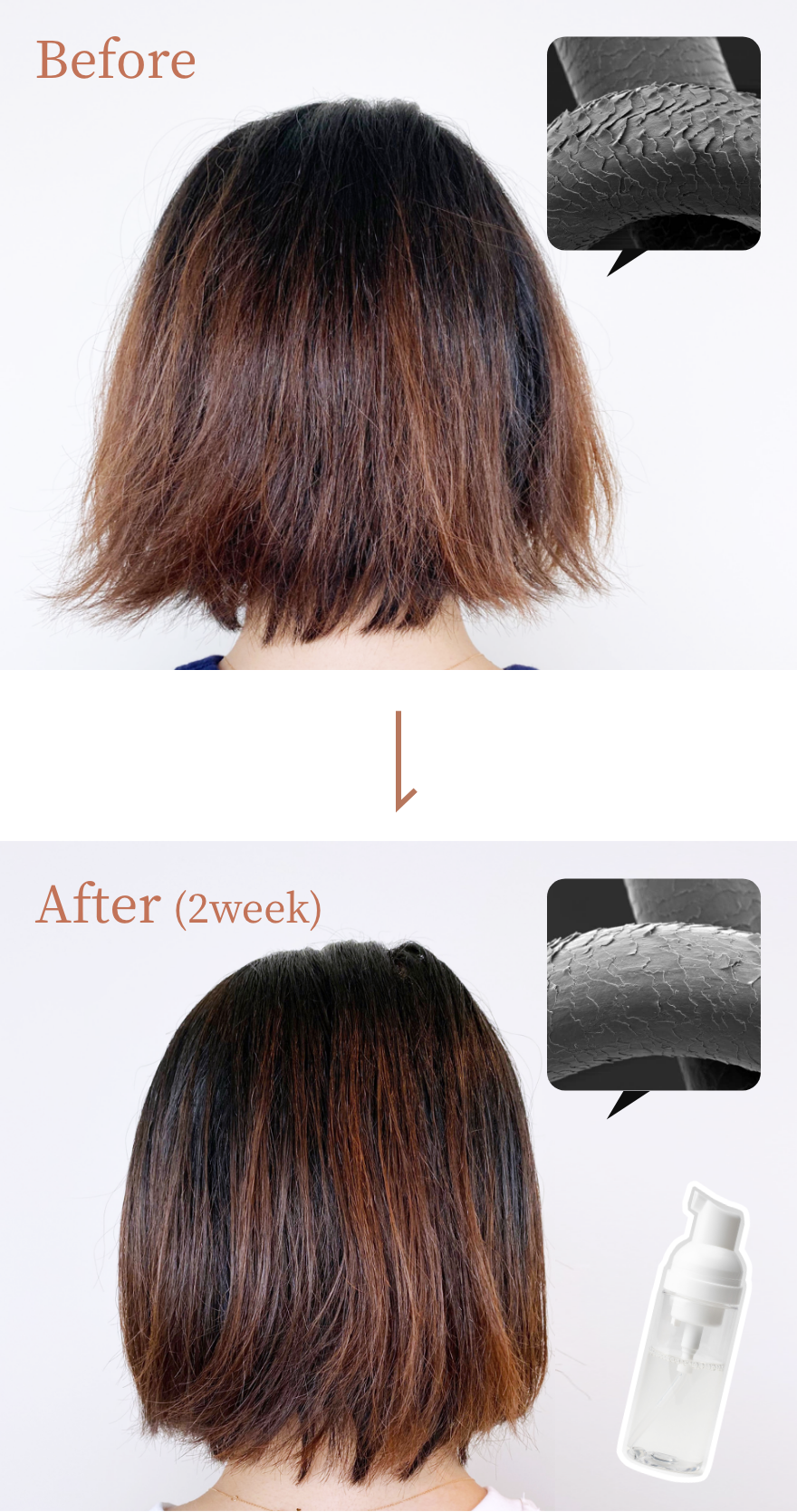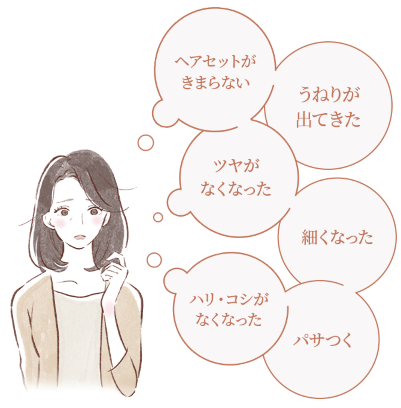 髪のシワ・たるみ・キューティクルの開きが改善され、髪本来のツヤが生まれます。