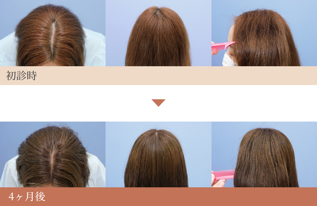 頭皮の血流を促進する発毛剤を用いることで、毛根に栄養を届け太くハリコシのある髪を育てます。
