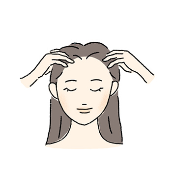 頭頂部とその付近も、5か所目安に頭皮をまんべんなく、中指で軽く指圧してください。