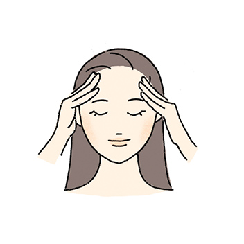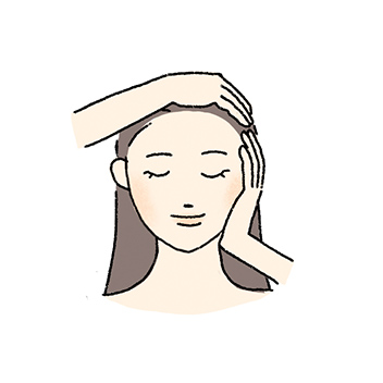 両方の手のひらで、側頭部を包み込むようにハンドプレス。