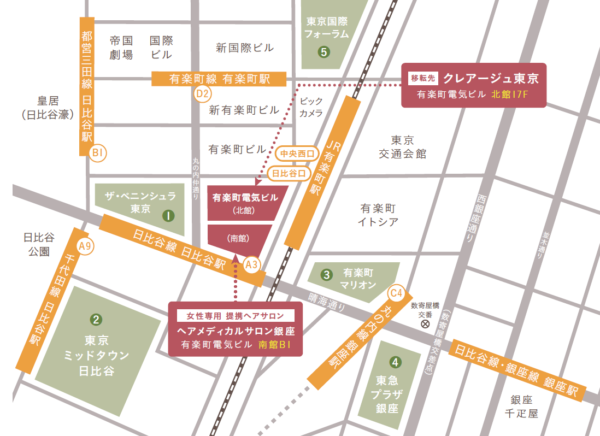 2020年11月19日(木)より当院は有楽町に移転し、「クレアージュ東京 エイジングケアクリニック」として名称新たに開院いたします。