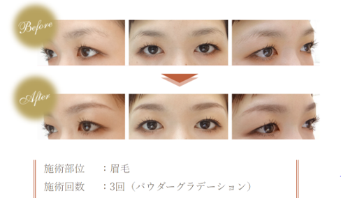 眉の形をグラデーションをつけながら色を入れる技術です。パウダーアイブローでメイクをしたような柔らかくふんわりとした自然な仕上がりが特長です。