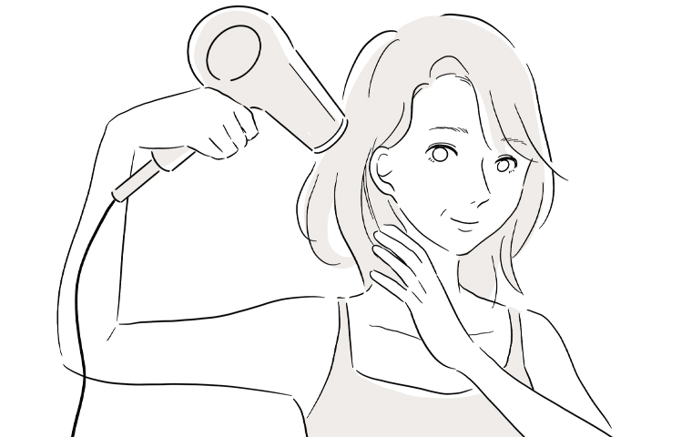 ・髪を乾かすときは、根元から毛先に向かって風をあてる(キューティクルをめくらないようにしましょう)