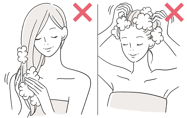 頭皮に爪をたてないことはもちろんですが、髪を両手でごしごしとこするように洗う「おがみ洗い」もNGですよ。