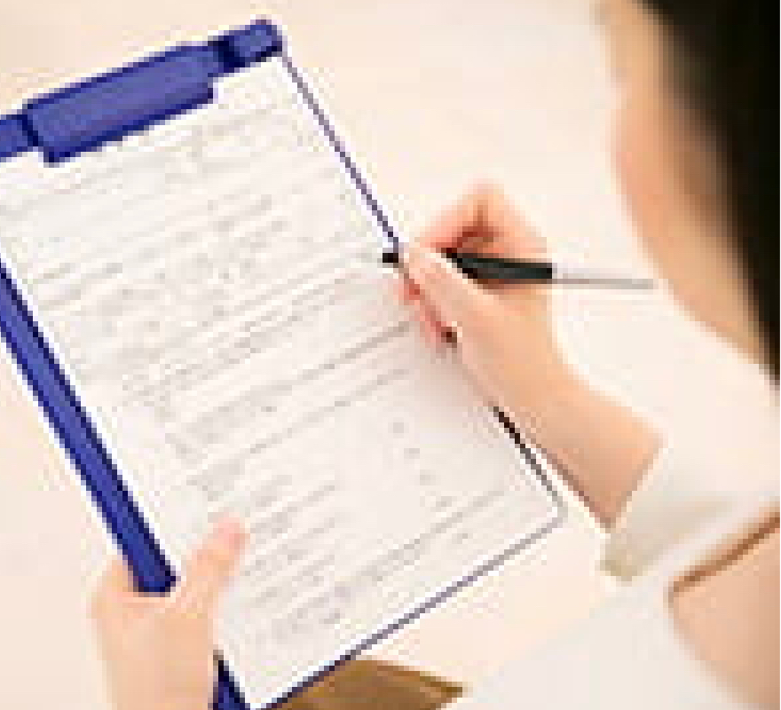 待合にて問診票のご記入をお願いしています。記入が終わりましたら受付にお戻しください。